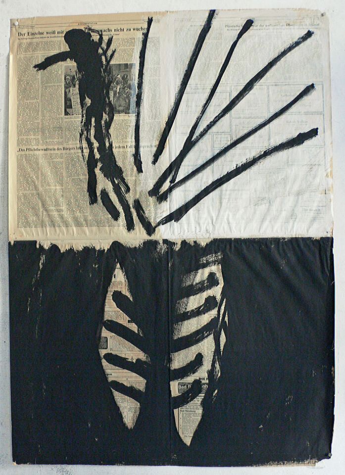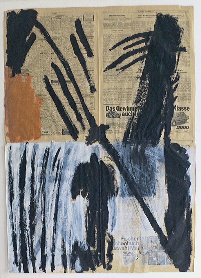 1975, Tempera auf Zeitung und Pappe, 31x41,8 cm / 1975, Tempera auf Zeitung und Pappe, 30,5x43,3 cm / 1975, Tempera auf Papier u. Pappe, 30,4x46 cm / 1975, Beleidigtes Land, Tempera auf Zeitung u. Pappe, 31x41,5 cm / 1975, Tempera auf Zeitung, Papier und Pappe, 30x41 cm / 1979, Tempera auf Papier u. Pappe, 78x107 cm